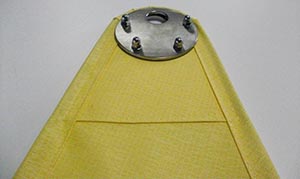 Die Standardausführung für die Hofsaess Sonnensegel, ist der rundum doppelt eingeschlagene Hohlsaum, zum einziehen eines Stahlseiles in den Saum. Die Ecken sind mit einer festvernähten Eckverstärkung, auf der wiederum eine besonders feste Zuglasche mit D-Ring aufgenäht ist.