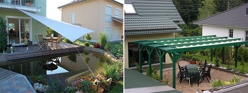 Anwendungsbeispiele für hochwertige Sonnensegel aus besten Outdoor Textilien: